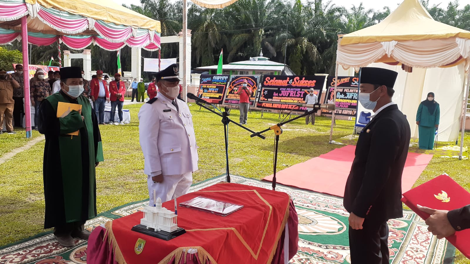 Bupati Rokan Hilir (Rohil) Afrizal Sintong sebelum melakukan pelantikan Datuk Penghulu Kasang Bangsawan Jufri ST, mengajak para tamu undangan dan masyarakat untuk membacakan Al-Qur’an surat Alfatihah.