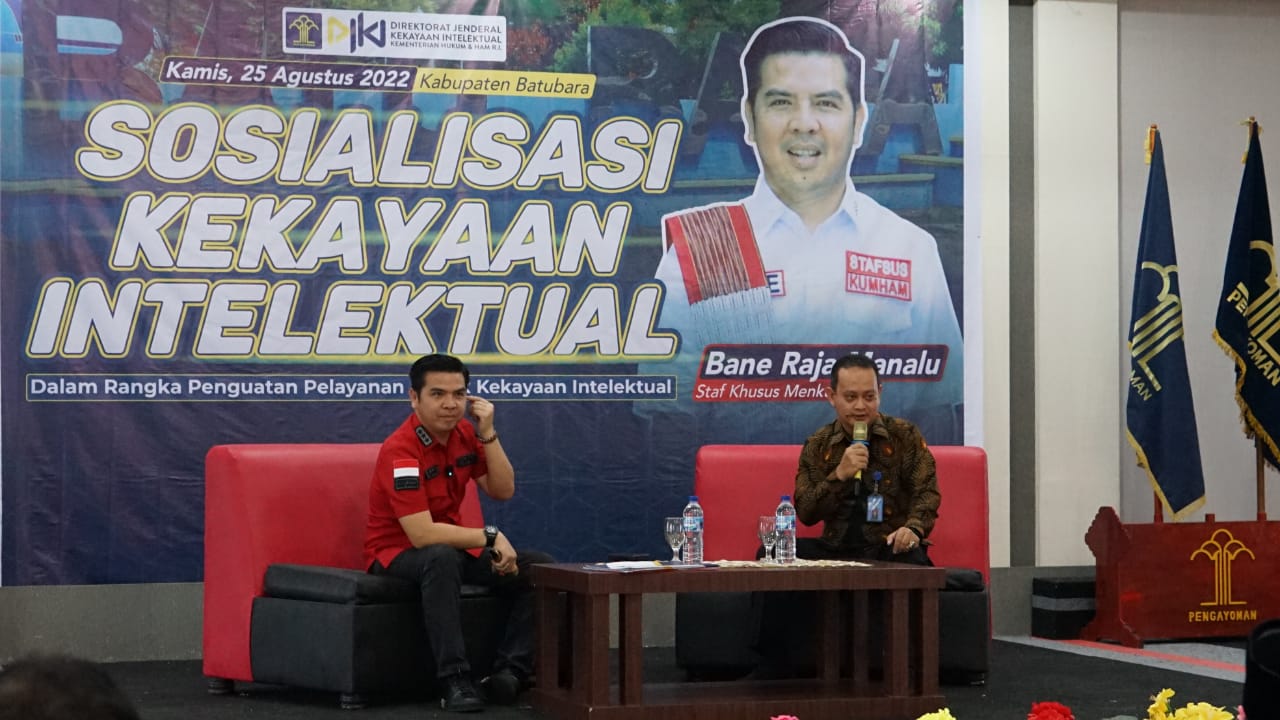 BATUBARA- Kantor Wilayah Kementrian Hukum dan Hak Asasi Manusia (Kemenkumham) Sumatera Utara kembali melaksanakan Sosialisasi Penguatan Pelayanan Publik Kekayaan Intelektual. Kali ini dilaksanakan di Aula Hotel Grand Malaka, Kabupaten Batu Bara, Sumatera Utara, Kamis (25/8/2022).