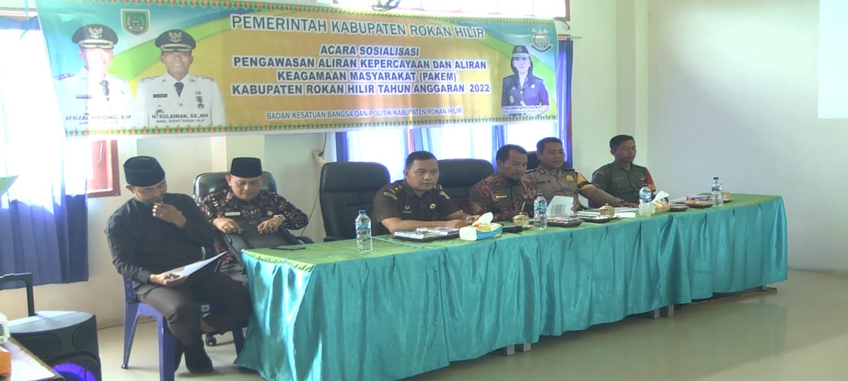 ROHIL – Tim gabungan untuk Pengawasan Aliran Kepercayaan dan Aliran Keagamaa Masyarakat (PAKEM) Kabupaten Rokan Hilir mengadakan kegiatan sosialisasi terkait Pakem di Kecamatan Batu Hampar, Kamis (1/9/2022).