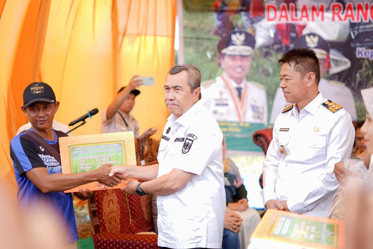 Pada saat panen raya padi nusantara satu juta hektar Gubernur Syamsuar juga menyerahkan bantuan untuk para petani diantaranya pupuk NPK, pupuk organik, dolomit, pupuk hayati, herbisida, benih durian dan traktor sebanyak 3 unit. (Ant)