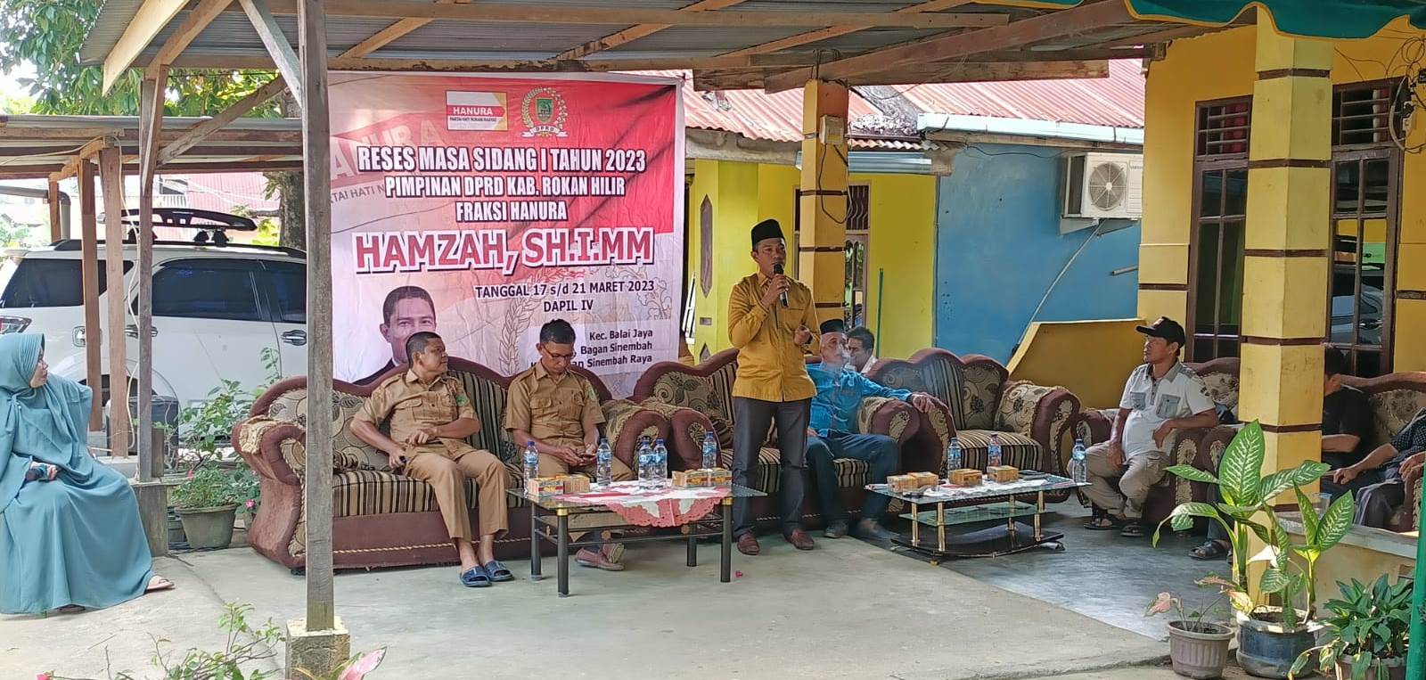 ROHIL – Wakil Ketua DPRD Rohil Hamzah SHI mengelar kegiatan reses di sejumlah titik di Kecamatan Bagan Sinembah dan Bagan Sinembah Raya.