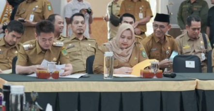 Bupati Rokan Hilir, Afrizal Sintong, S.IP mengikuti Rapat Koordinasi dan Penandatanganan Percepatan Pengelolaan Partisipasi Interes (PI) 10% wilayah kerja Rokan di Balai Pauh Janggi gedung daerah Gubernuran Pekanbaru Selasa,  (20/6/2023) .