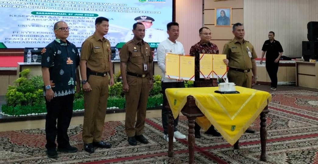 Bupati Rokan Hilir (Rohil) Afrizal Sintong SIP secara langsung membuka sosialisasi penerimaan mahasiswa baru program Magister (S2) sekolah Pascasarjana Universitas Lancang Kuning (Unilak) periode semester ganjil 2023/2024, Selasa (27/6/2023).