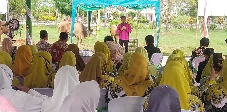 Kadis lingkungan hidup kabupaten Rokan Hilir, Suwandi,S.Sos menjelaskan dalam rangka idul adha 1444 H /2023 M selaku panitia mengucapkan terima kasih dan mengucapkan selamat datang kepada bupati Rohil Afrizal Sintong,S.IP beserta isteri dan kepala OPD pada kegiatan penyembelihan hewan qurban pada pagi ini.