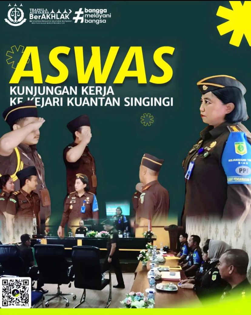 Melalui siaran pers Kasi Penerangan Hukum (Penkum) Kejaksaan Tinggi Riau Bambang HeriPurwanto, SH.,MH menjelaskan, turut hadir dalam kegiatan tersebut Asisten Pengawasan Kejaksaan Tinggi Riau Ayu Agung, S.H., S. Sos., M.H., M. Si (Han), Kepala Kejaksaan Negeri Kuantan Singingi Nurhadi Puspandoyo, S.H., M.H, Para Pemeriksa Bidang Pengawasan pada Kejaksaan Tinggi Riau dan Auditor Bidang Pengawasan pada Kejaksaan Tinggi Riau, Para Kepala Seksi & Kepala Sub Bagian pada Kejaksaan Negeri Kuantan Singingi, serta seluruh Pegawai pada Kejaksaan Negeri Kuantan Singingi.