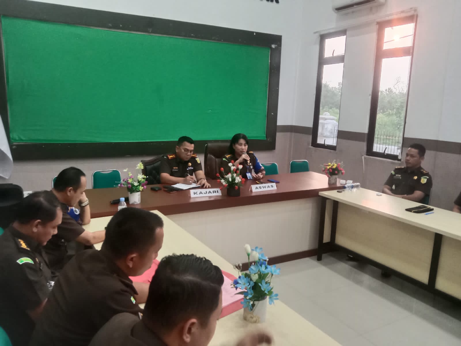 Dalam percakapannya Asisten Pengawasan Kejaksaan Tinggi Riau Ayu Agung, SH, S.Sos, MH, M.Si (Han) menyampaikan Inspeksi pemantauan yang dilaksanakan dalam rangka pemantauan dan pemeriksaan terhadap hasil kinerja seluruh bidang tugas yang dilaksanakan di Kejaksaan Negeri Kampar.