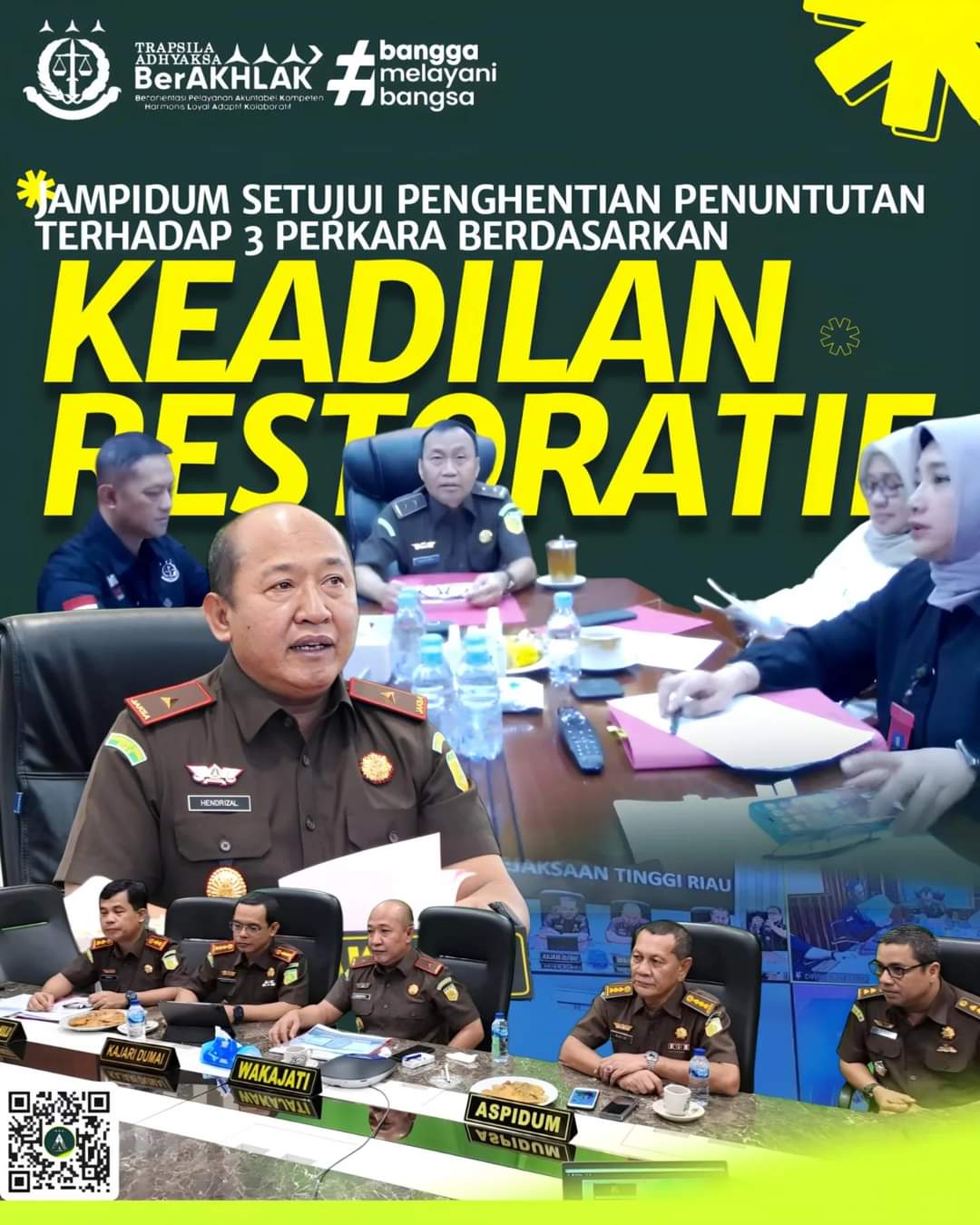 7. Masyarakat merespon positif penghentian penuntutan berdasarkan keadilan restoratif,”ujar Hendrizal Husin.