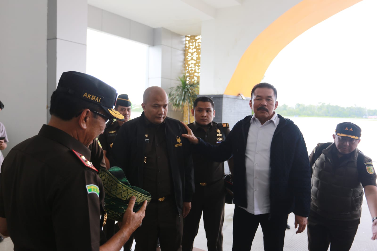 PEKANBARU| Kepala Kejaksaan Tinggi (Kajati ) Riau Akmal Abbas, S.H., M.H didampingi Ketua Ikatan Adhyaksa Dharmakarini (IAD) Wilayah Riau Ny. Dewi Akmal menyambut kedatangan Jaksa Agung Republik Indonesia ST Burhanuddin beserta Ketua Umum Ikatan Adhyaksa Dharmakarini (IAD) Ny. Sruning Burhanuddin dan rombongan di Provinsi Riau.