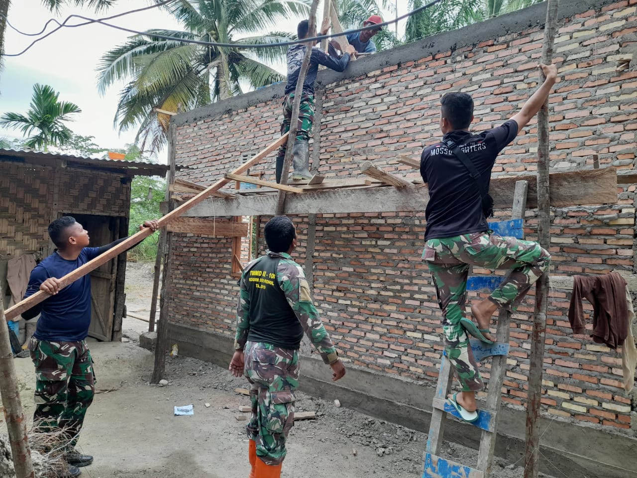 “Selama ini saya cuma bisa bermimpi punya rumah yang kuat, tidak bocor kalau hujan. Sekarang, melihat balok lama dibongkar dan kayu atap baru dipasang, saya sangat bersyukur dan terharu. Terima kasih kepada TNI dan warga yang membantu,” ujar Bapak Slamet, dengan suara parau penuh haru, sambil memandang rangka atap baru di rumahnya.