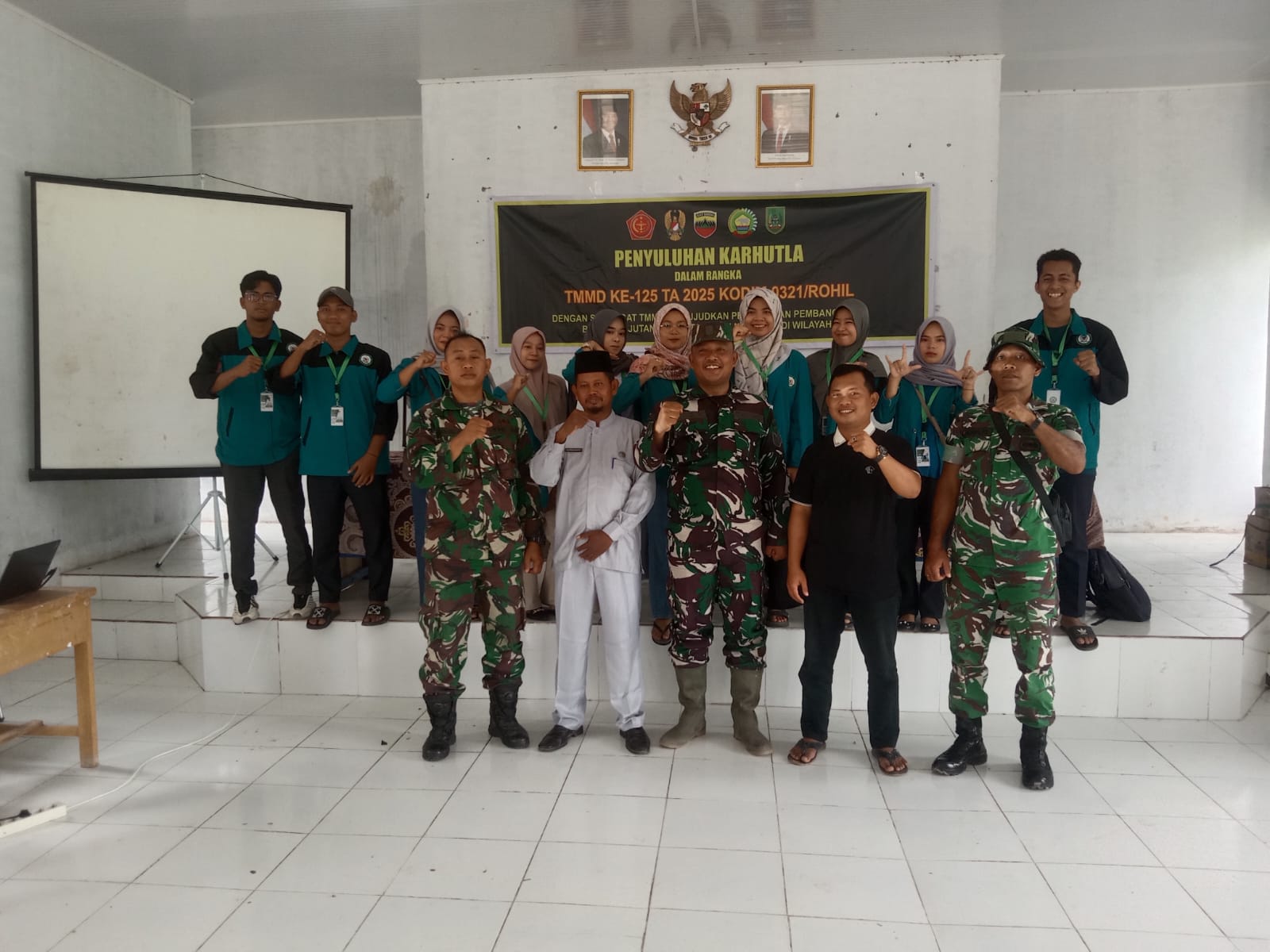 Suak Temenggung, Rohil – Dalam rangkaian program TNI Manunggal Membangun Desa (TMMD) ke-125 Kodim 0321/Rokan Hilir, kegiatan penyuluhan non-fisik bertema pencegahan Kebakaran Hutan dan Lahan (Karhutla) digelar di Aula Kantor Penghulu Suak Temenggung, Kecamatan Pekaitan, Kabupaten Rokan Hilir pada Selasa, 5 Agustus 2025. Kegiatan ini dihadiri oleh pemateri dari Satgas TMMD, Serma Riza Arisandi dan Serda Supandi Jaya, serta Pj. Datuk Penghulu Suak Temenggung, Suprianto, bersama pejabat RT/RW se-Kepenghuluan Suak Temenggung dan puluhan warga setempat. Hadir juga BPBD Rohil dan Mahasiswa STAI Ar-Ridho Bagansiapiapi.
