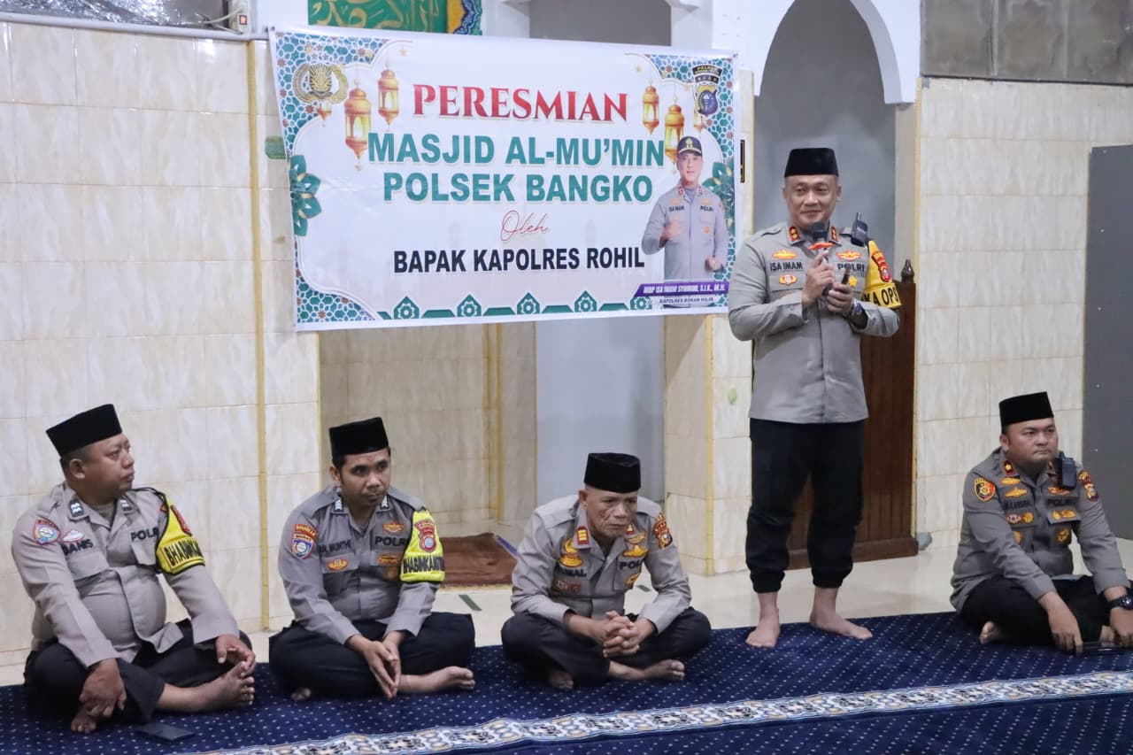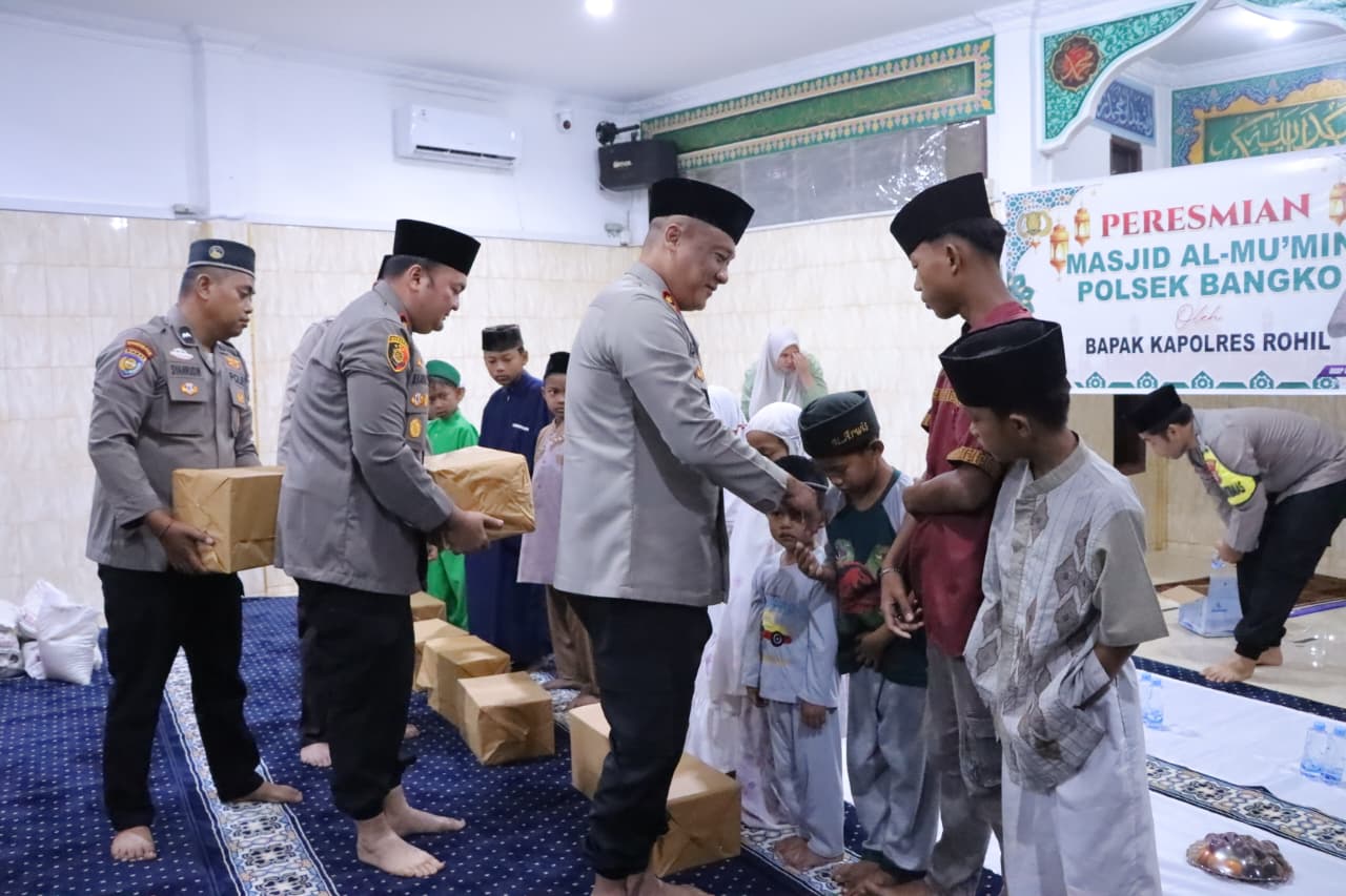 ROHIL – Kapolres Rohil melakukan peresmian Masjid Al Mu’min Polsek Bangko yang dilanjutkan dengan pemberian santuan kepada anak yatim di Kecamatan Bangko, Rohil pada hari Jumat (13/2/2026) sekitar pukul 05.10 WIB ertempat di Jalan Tugu Kelurahan Bagan Kota.