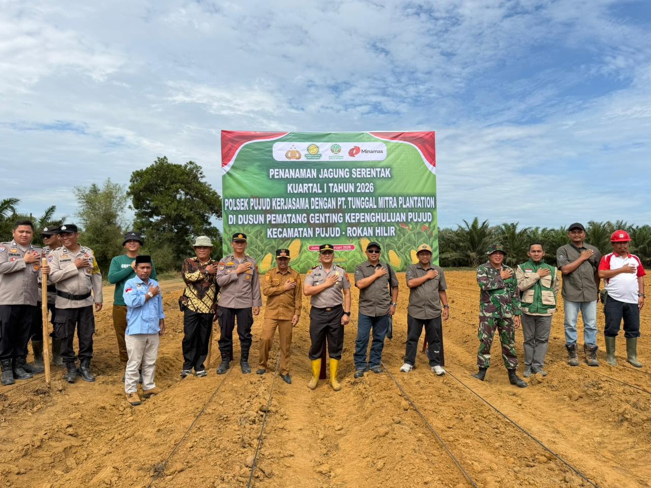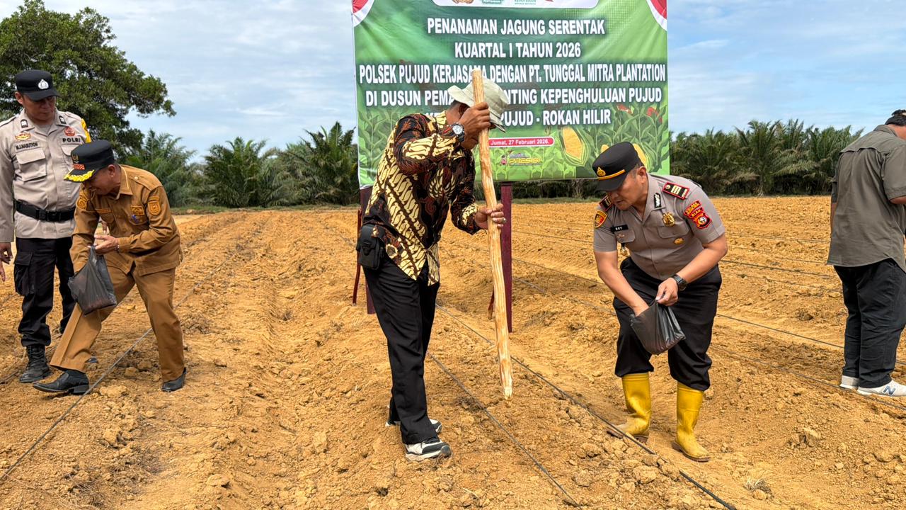 Dalam rangka mendukung program ketahanan pangan nasional serta implementasi Asta Cita Presiden Republik Indonesia, Polsek Pujud melaksanakan kegiatan Penanaman Jagung Serentak Kuartal I Tahun 2026, Jumat (27/2/2026) sekitar pukul 09.00 WIB.
